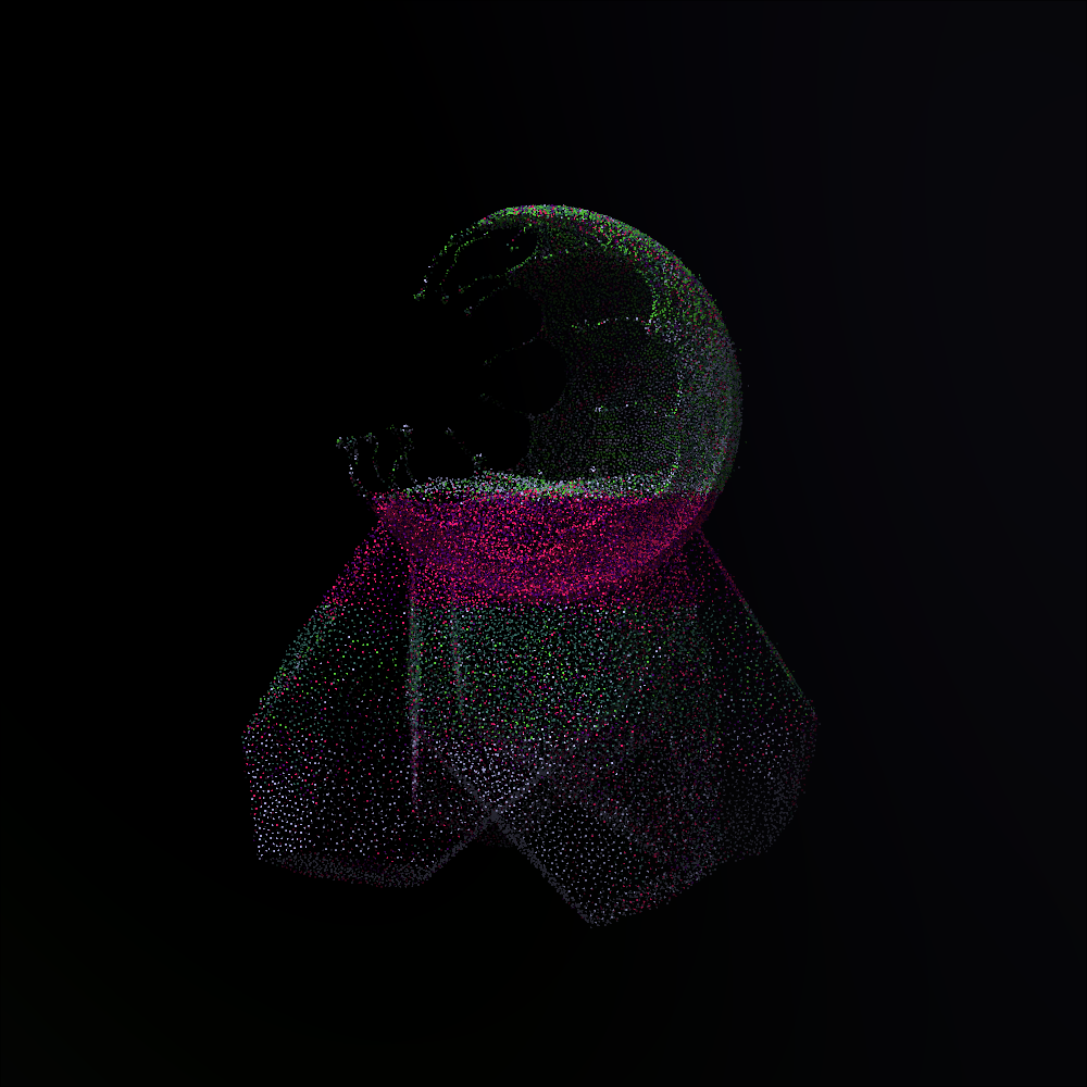 The automata congeals into form alluding to the way our minds close over experience with symbolic representation, like a plastic bag coming down over a kaleidoscope of butterflies. What was free in the open air is now trapped. What was previously wild and unpredictable is now under control, frozen and communicable.
