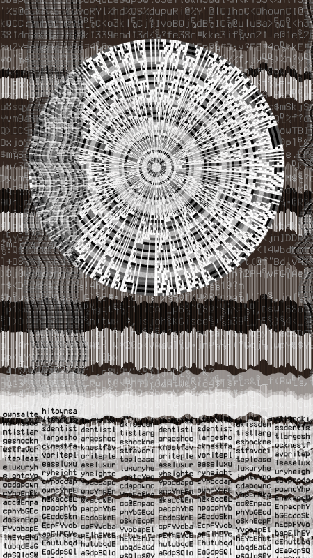The algorithm picks 8 to 15 non repeating words from bip39 dictionary (a special dictionary for wallet generation). Then it converts each word into binary array (Ones and zeros) to feed the initial sequence of celluar automata algorithm. In this piece, i have used radial placement to display the bits created by the cellular automata algorithm; which i think creates some interesting visuals combined with perlin noise distortion, resembling cellular forms seen under microscope.