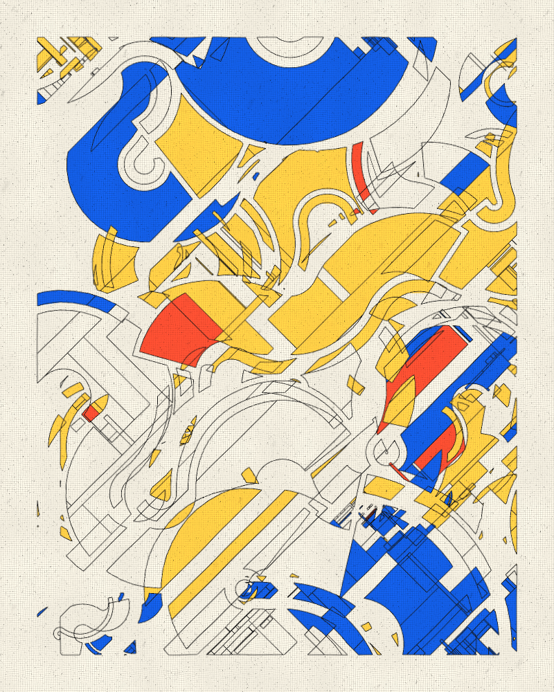 The algorithmic theme of the iterations was extensive usage of boolean operations (intersection and difference) on polygons to derive interesting composite shapes.