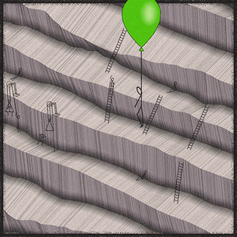 I then became interested in how subtle changes of background colour and changes of balloon colour changed the story, or the feeling of the story - ranging from bright hope to despair and futility.