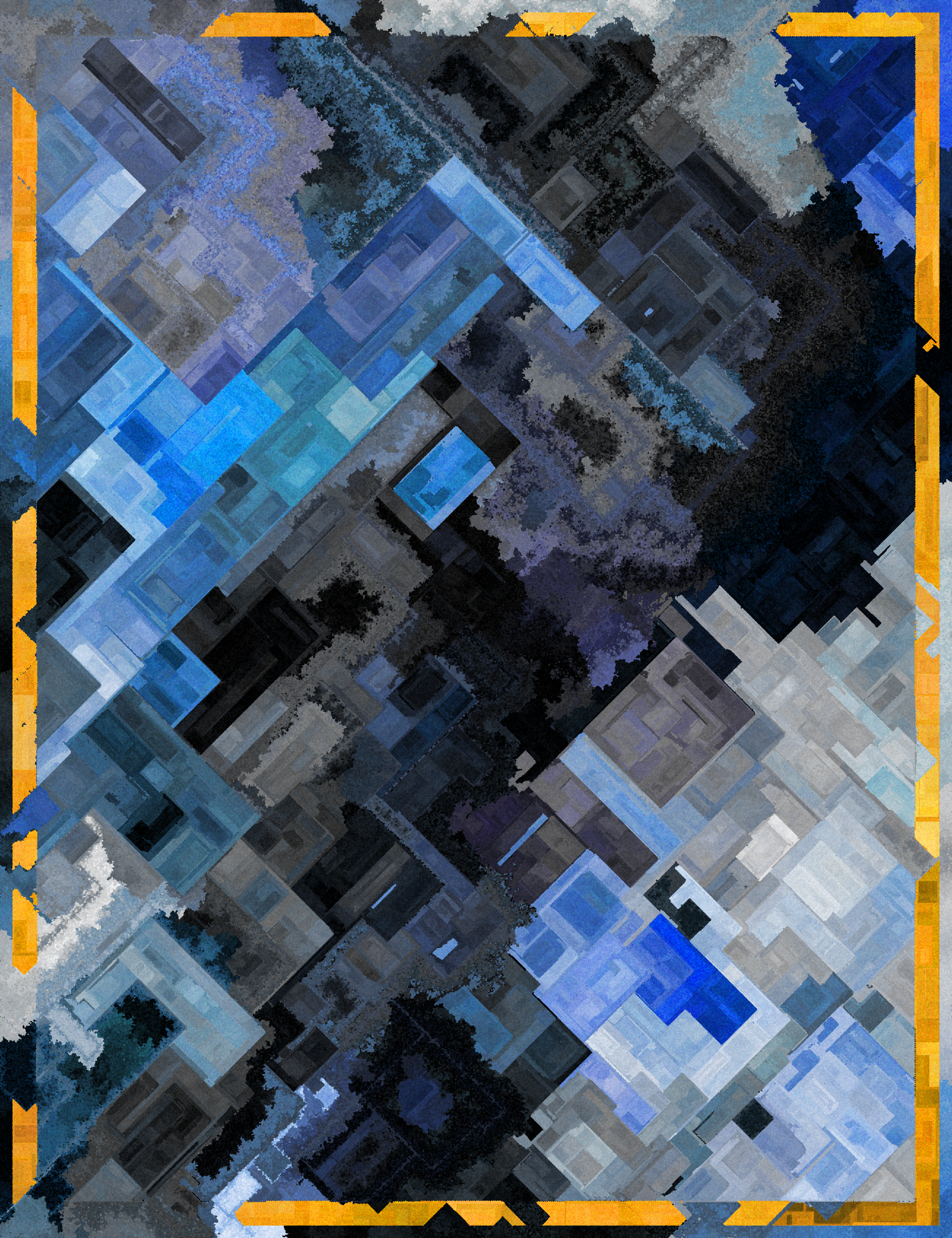 This space filling algorithm explores a range of abstract outputs. A chaotic composition is formed as it mutates and interferes with itself along the way. It finishes when the canvas has been fully covered. There are 20 color palettes inspired by natural phenomena. It was programmed from scratch in vanilla JavaScript.