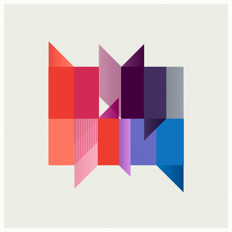 This collection exists of connected rectangles on a tight grid with lines cutting their way through the patterns made with a simple algorithm.