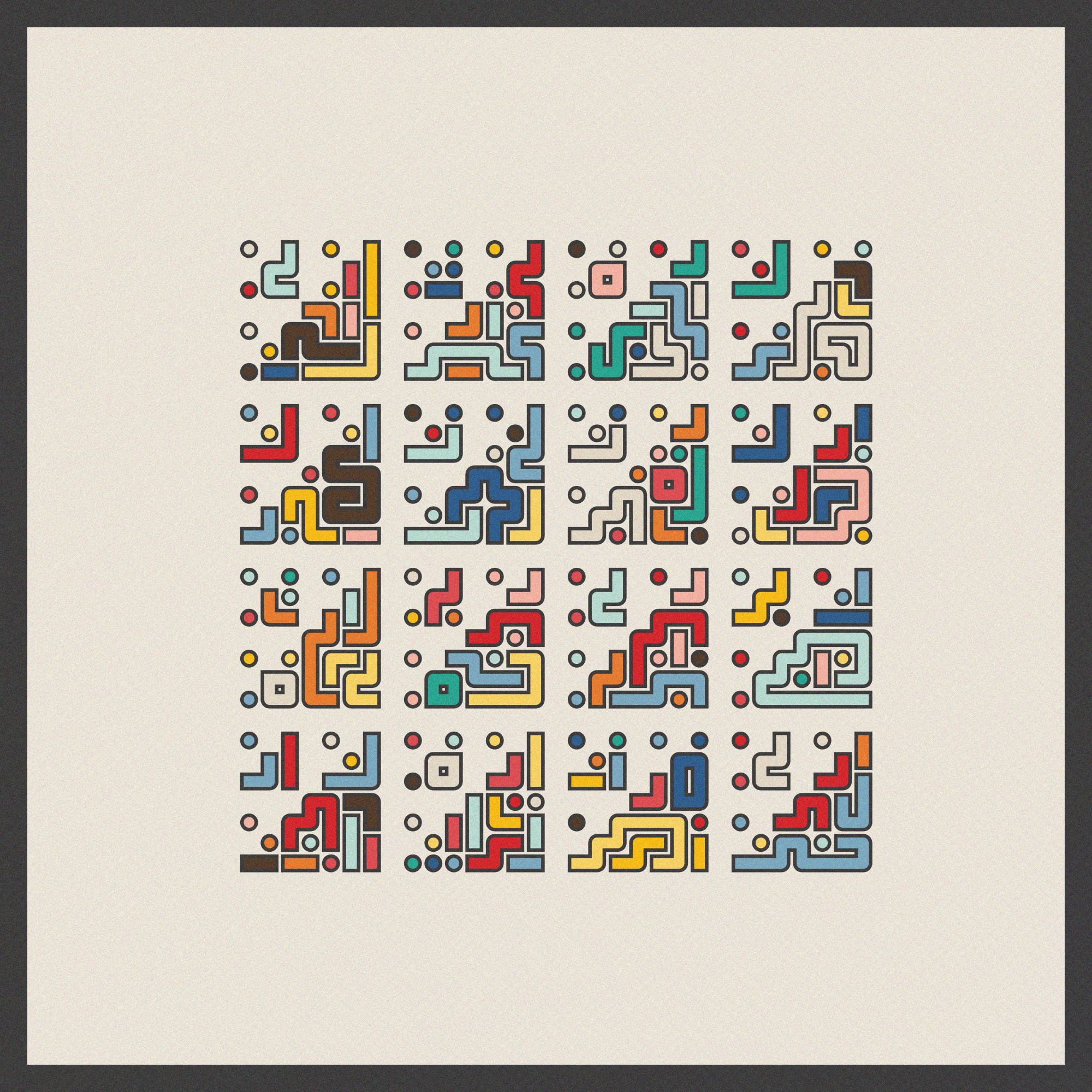 This series is based on a simple algorithm - lines of a random length are drawn on a square grid until the grid is full.