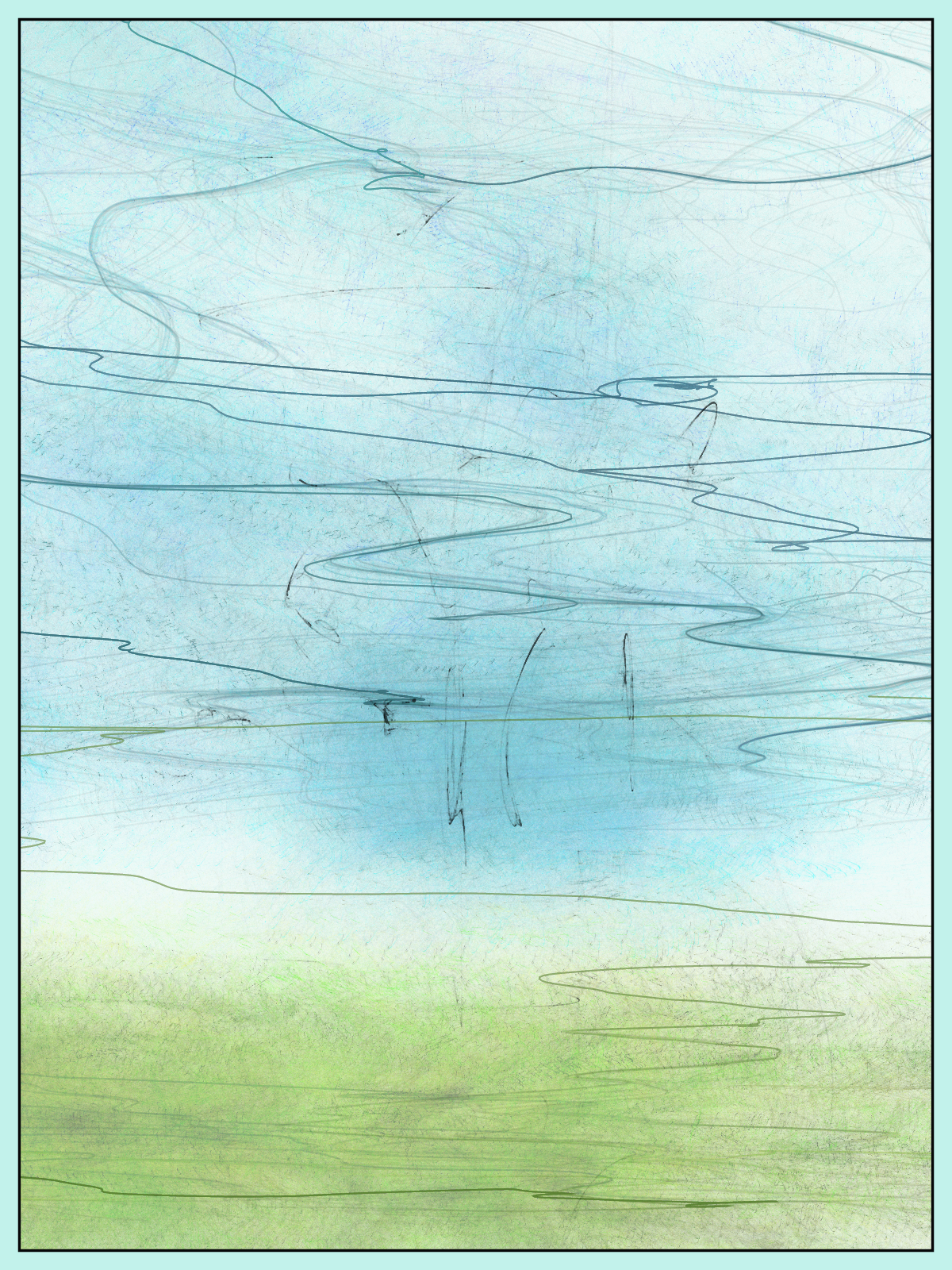An abstract painting of a landscape with sky.