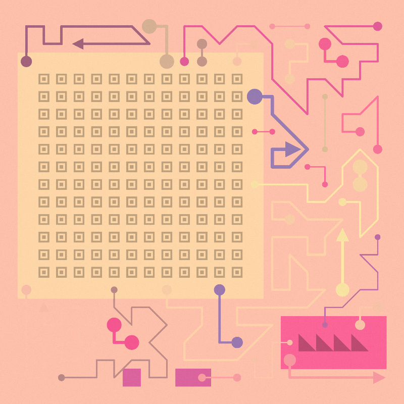 "Unfamiliar Directions" is my submission for #fxhashturnsone. This project is a study of grid walking and avoidance. While working on this p5.js sketch, the renders looked like a combination of circuits and chips on an electronic board (two of the main functions being 'circuit' and 'chip.'). The more I played with it in fx(stdio), the more it started to resemble maps and directions given by a mapping app on my phone. Some paths seem straightforward, from point A to point B. Other times, the directions weave right through buildings and seem to end at about the same place as the start.