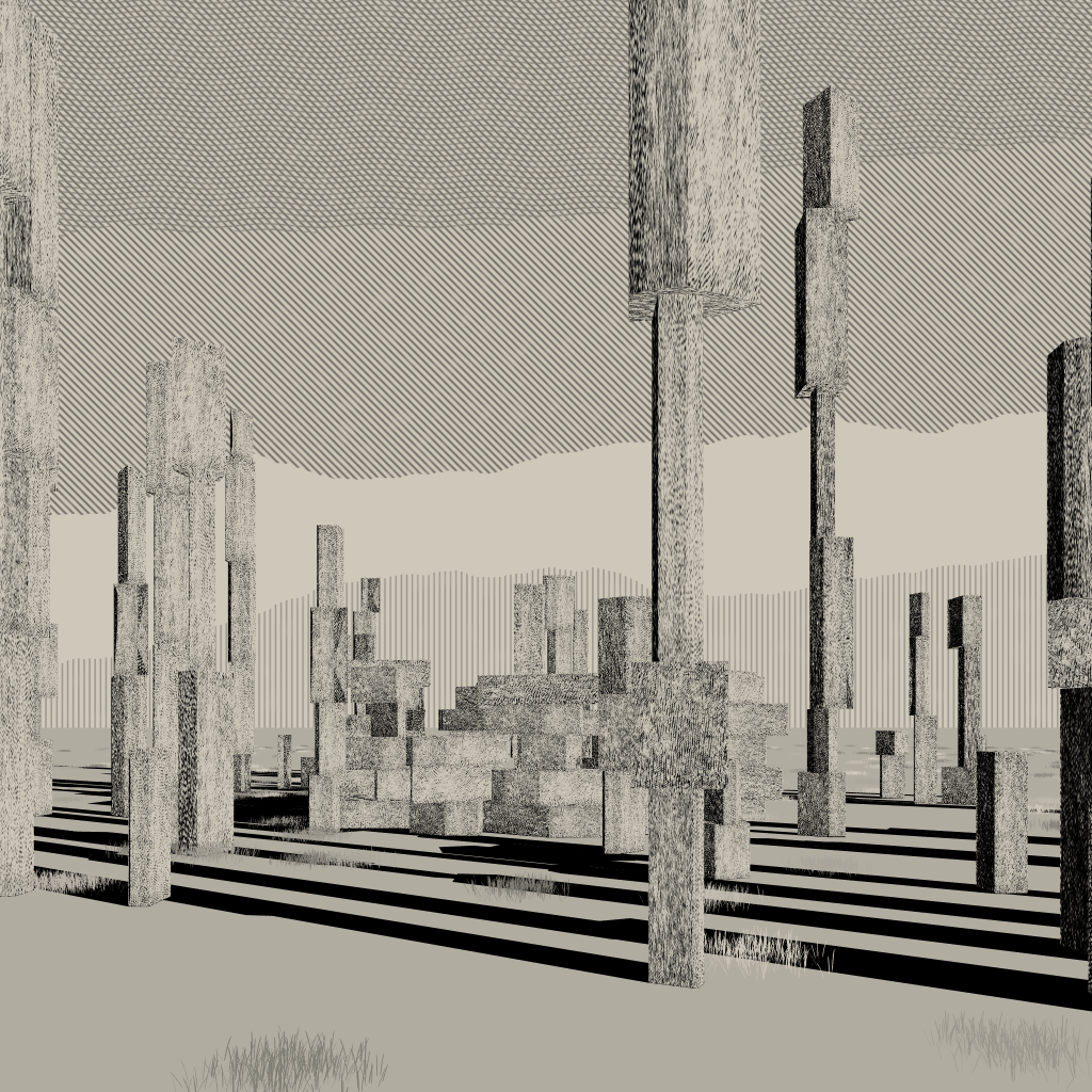 Henge is an exploration of circular megalithic structures of the prehistoric age. It is a work of historical fiction where these stone assemblies, achieved through herculean efforts of stacking, aligning, and balancing immense chiseled rocks, are reimagined within an alternate universe of algorithmic possibility. Historically, henges share a few qualities that inspired this project. First, they are places of gathering within a loose collection of stones to organize ceremony or worship under celestial alignments. They are also monolithic in their materiality and employ the most elemental techniques of megalithic, or large stone, construction. These particular types of henges, known as cromlechs, are circular spaces fit with purpose and ritual and in this sense, serve as precedents to the great human edifices; charging landscapes with meaning and presence through geometry and order. Finally, henges are a collective language of place-making shared across a range of cultures and ages, from the Mesolithic and Neolithic eras and across territories from modern-day Morocco, Portugal, Brazil, Germany, Scandinavia, to the well-known Stonehenge in Great Britain.