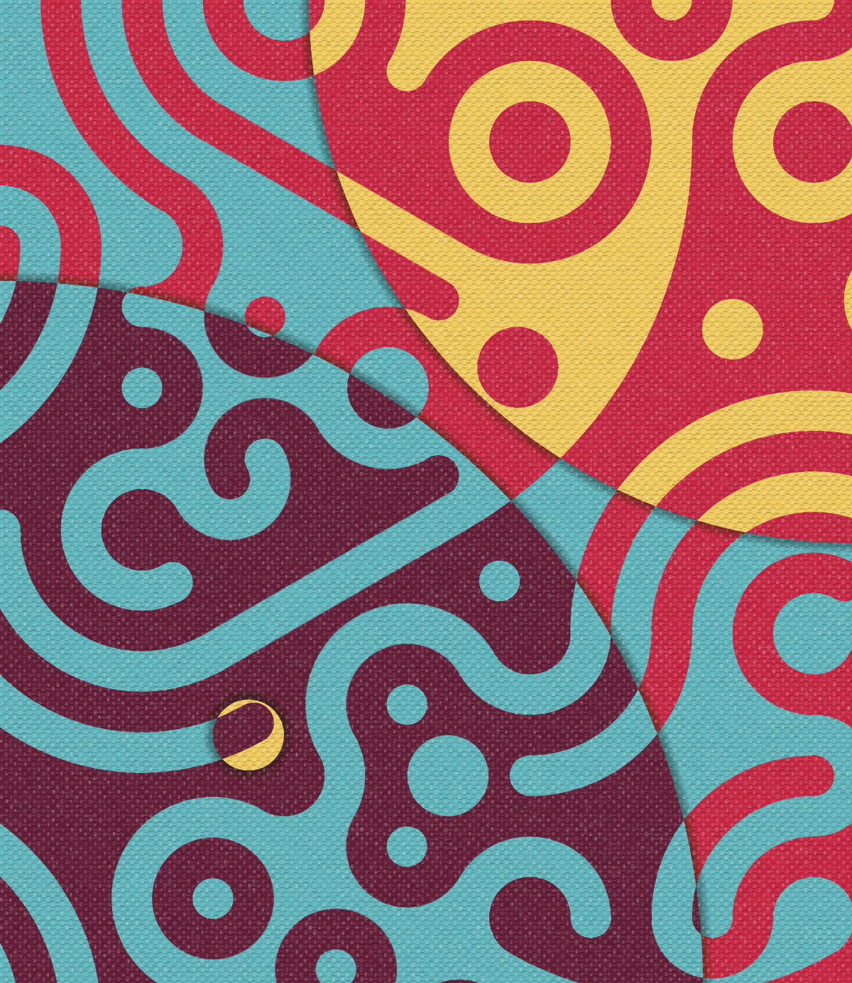 Paper Cut is a p5.js layered collage composition of Truchet patterns on textured paper.