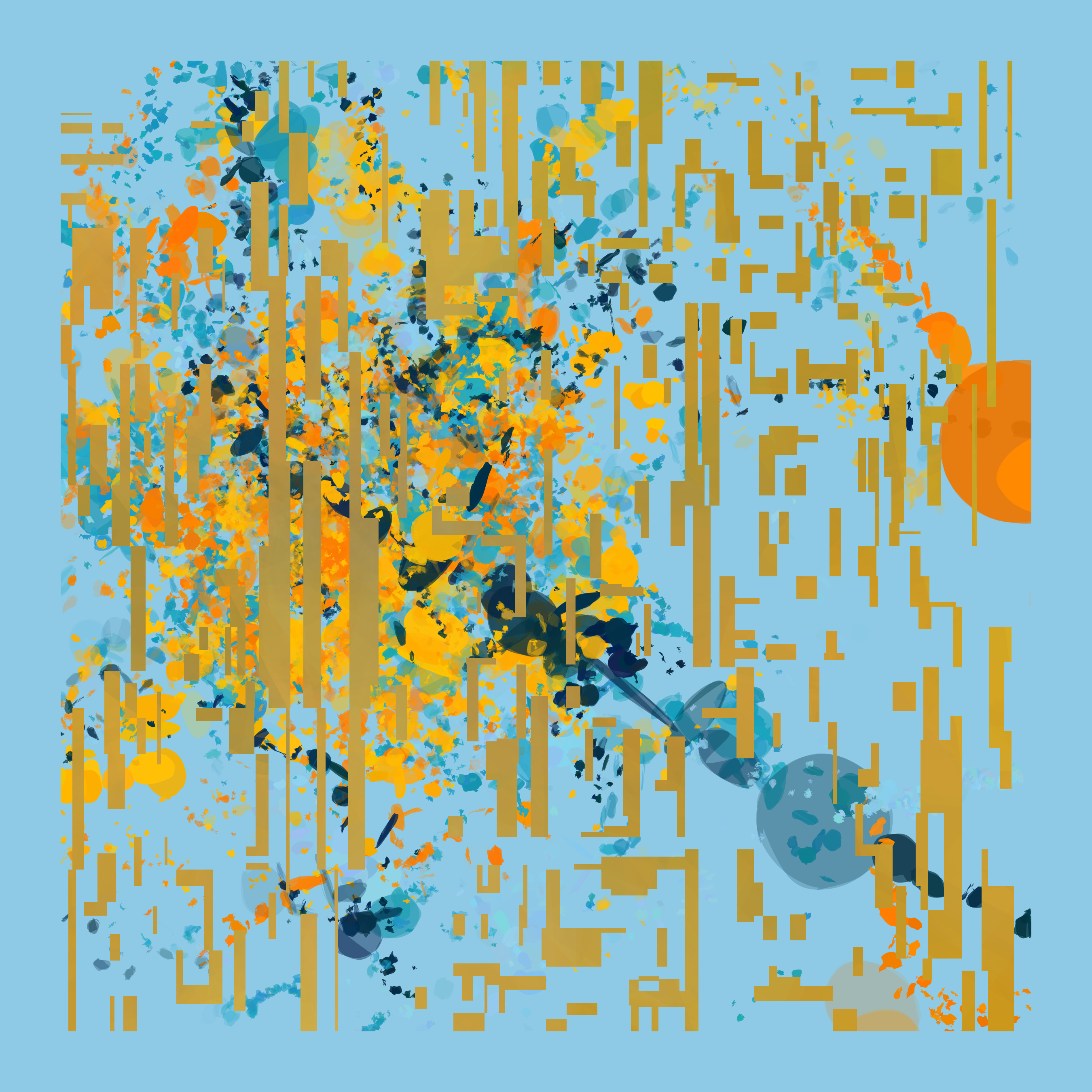 I also want to let you participate in the creation of your artwork variation too. Each iteration is a unique and unpredictable dance of light in the dust and gravitation between matter clusters, however, with the controls listed below, you can change the probability of light/dust blocks as well as the tiling layout.