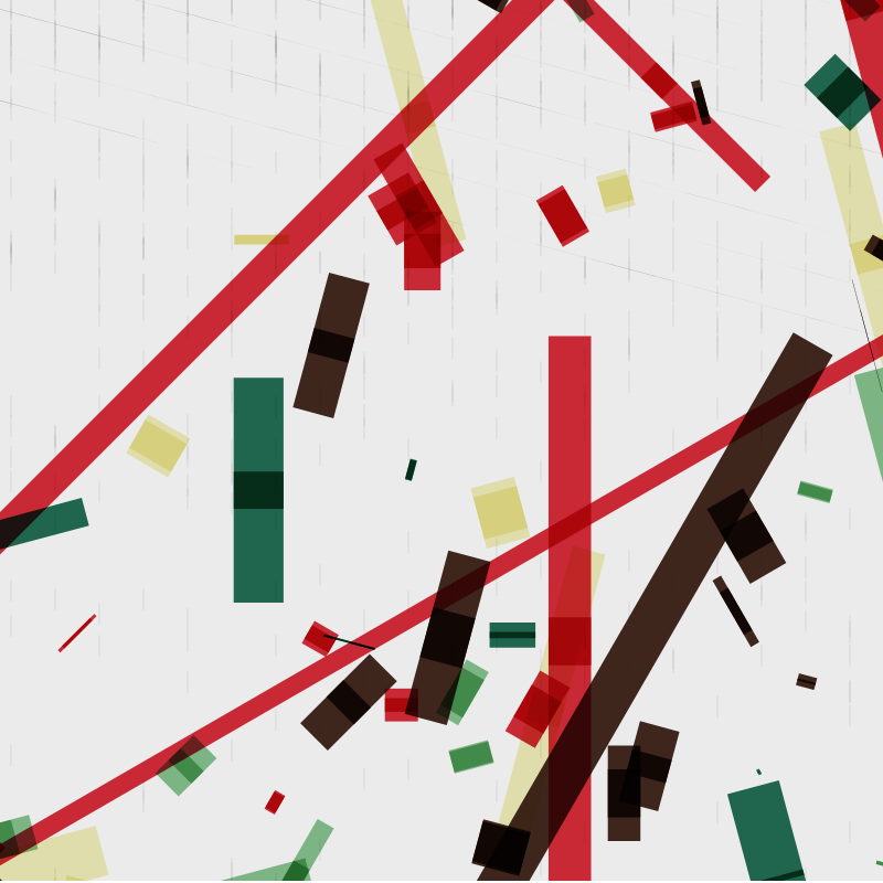 Experiment with rectangle shape, rotate function, size and random composition.