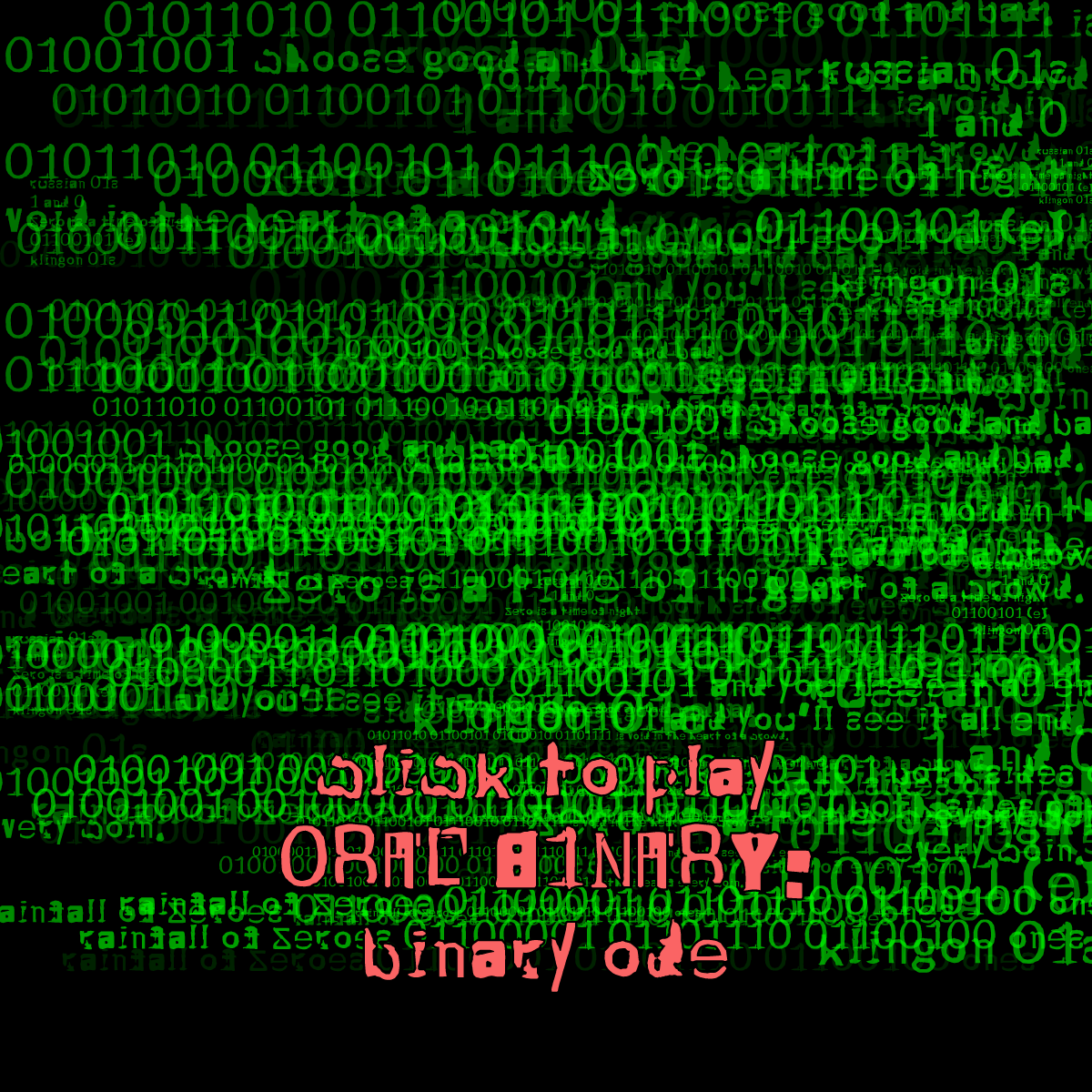 Fusing AI-powered verse, spoken word, original music and visuals all in generative composition, this playful ode to our universal language is inspired by Stiles’ binary-based art and Stern’s performative poetics. The experiment centers on a transhuman poem by Stiles’ AI alter ego, Technelegy, voiced as zeroes and ones, layered with human- and machine-generated sound – evoking ancient data transmissions in the oral tradition as well as the immersive potential of multisensorial, multimedia, metaversal language and literature. Brought into existence via the blockchain, it is a new form of “token word poetry.”