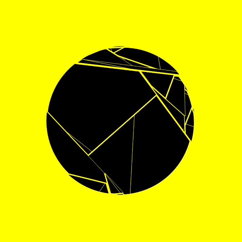 Each mint gets a unique polygon (10 available) and color. Hues of complementary colors constantly calculated as going through the spectrum. Breaking points defined by the center of each newly generated polygon.