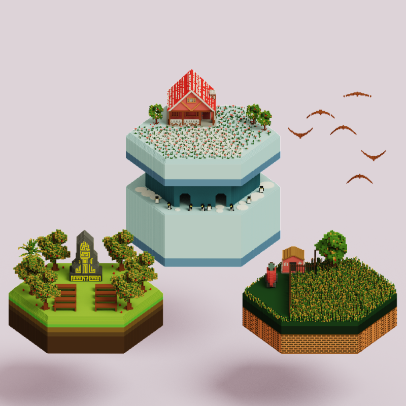 This island was created with magicavoxel, with various building constructions, various climates, and various activities within the island