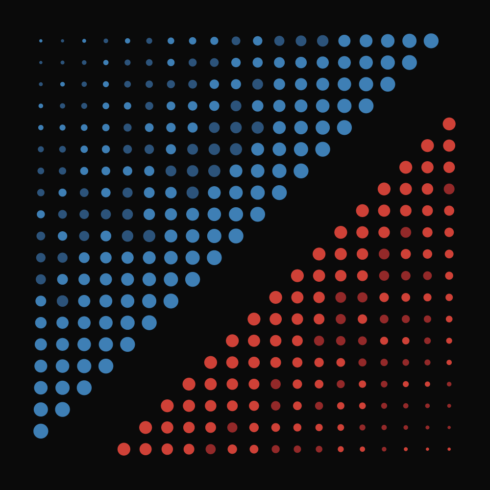 REPs (short for representatives) is a generative art project that visualizes one of the most impactful re-occurring events in global politics: the US Elections. Each artwork represents one of the seven Congressional Elections between 2008 and 2020. The goal of the REPs is to strike a balance between a plethora of different artistic renderings that still convey a data-based result of an election.