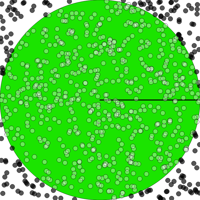 P(Coin in Circle) = extracted from number of coins in the circle vs out, by randomly placing coins: