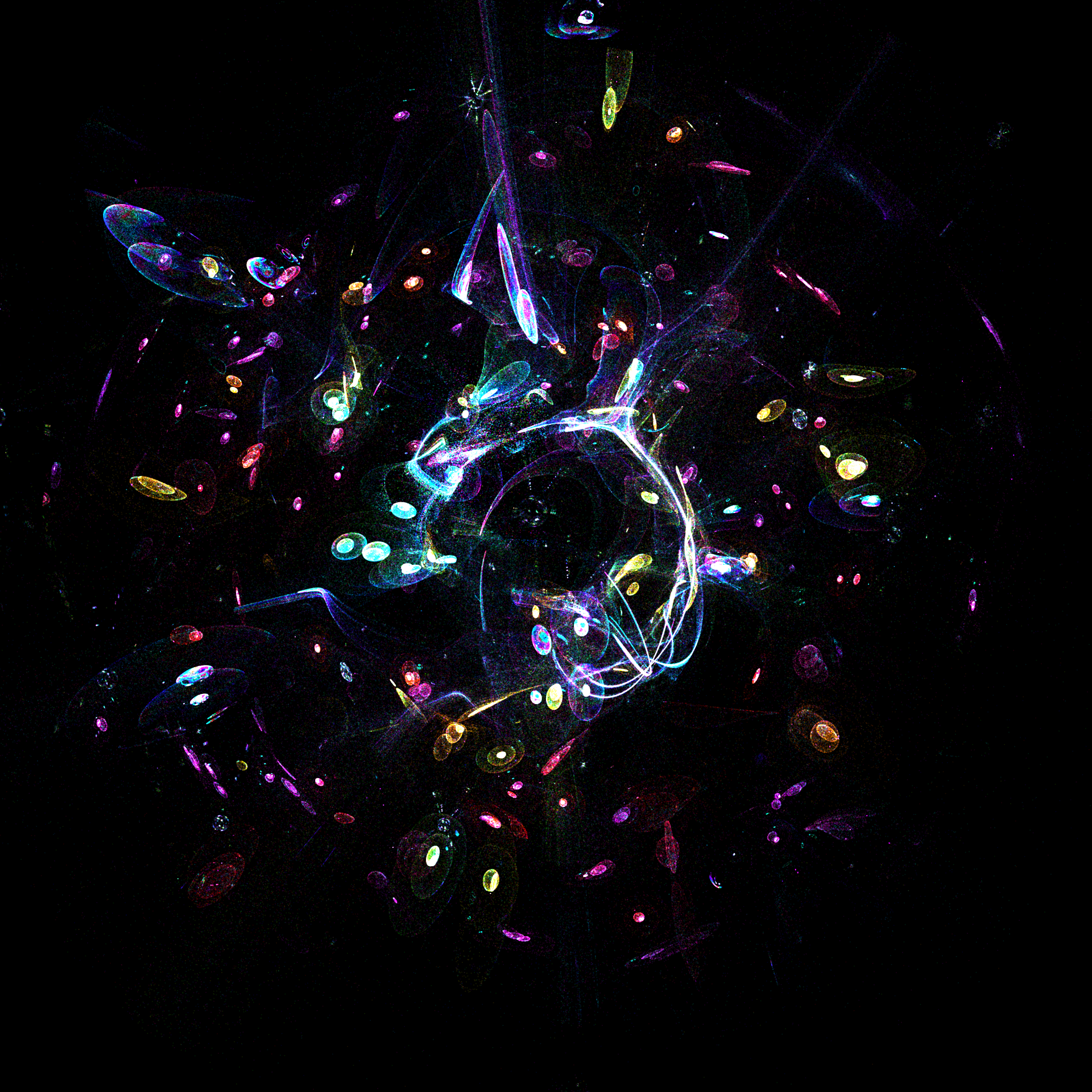 The center of a digital, quantified space emits 2 560 000 particles through a sequence of expansions, contractions and perturbations. ๐