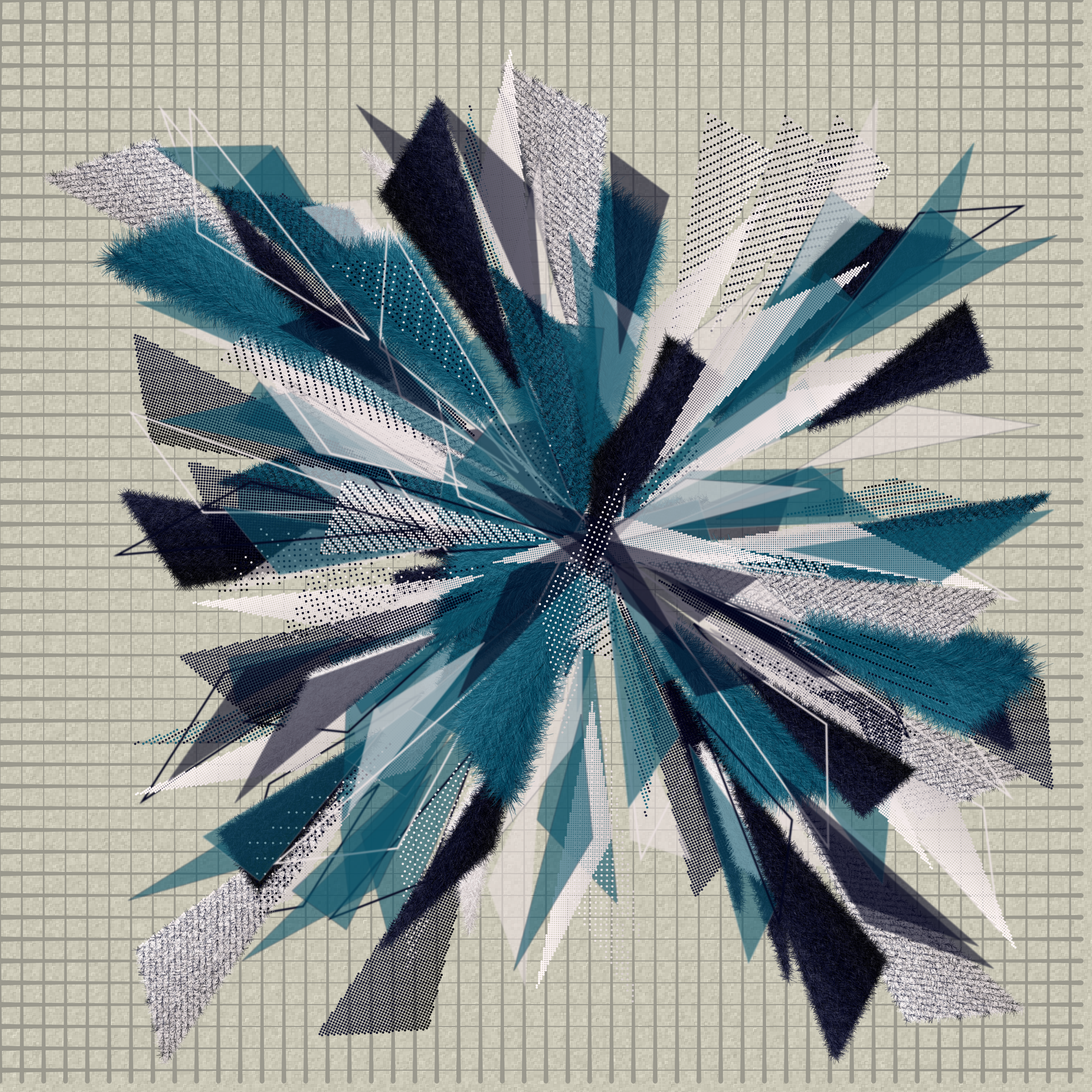 The subtle animation captures the essence of focus and movement. The sharp angles of the triangles draw the viewer's gaze towards the center of the piece, where the lines converge and intersect. This central point of focus is further emphasized by the sweeping curves and dynamic shapes that flow outwards from it, creating a sense of motion and energy.