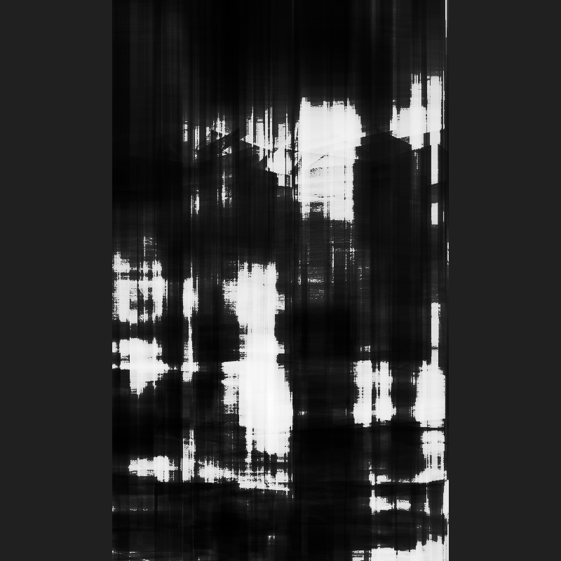 Monochrome color fields. A cityscape here, miraged forms there, dodged and burned quads everywhere.