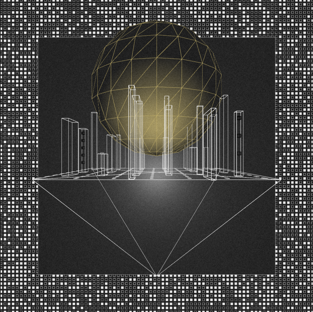'projected metropolis' is a holographic projection of a city during sunset. This strange hologram holds infinite variations, from gem-shaped suns to overly saturated skies.
