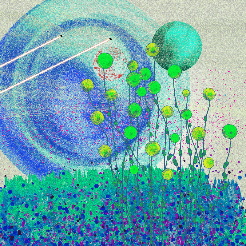 Hand-painted digital-watercolor layers: