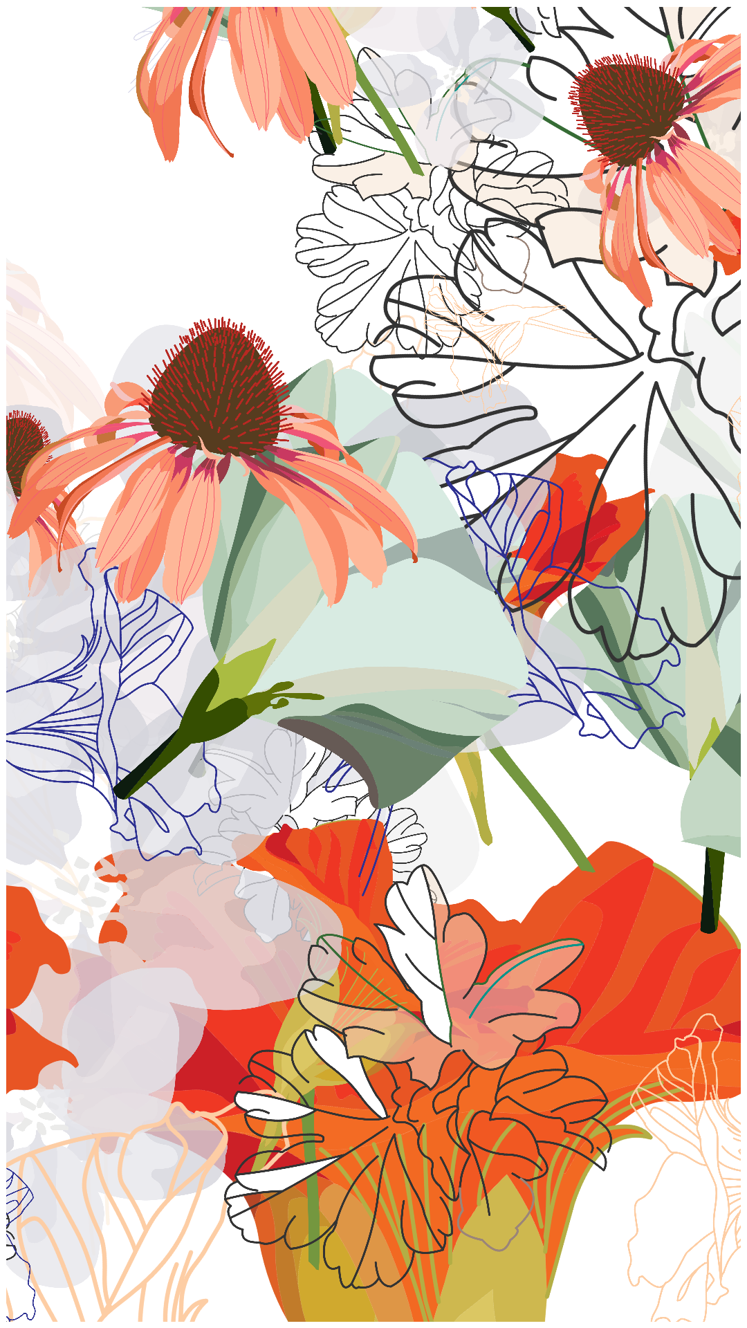 Different plant elements, based on SVG vectors, organize into ever new compositions.
