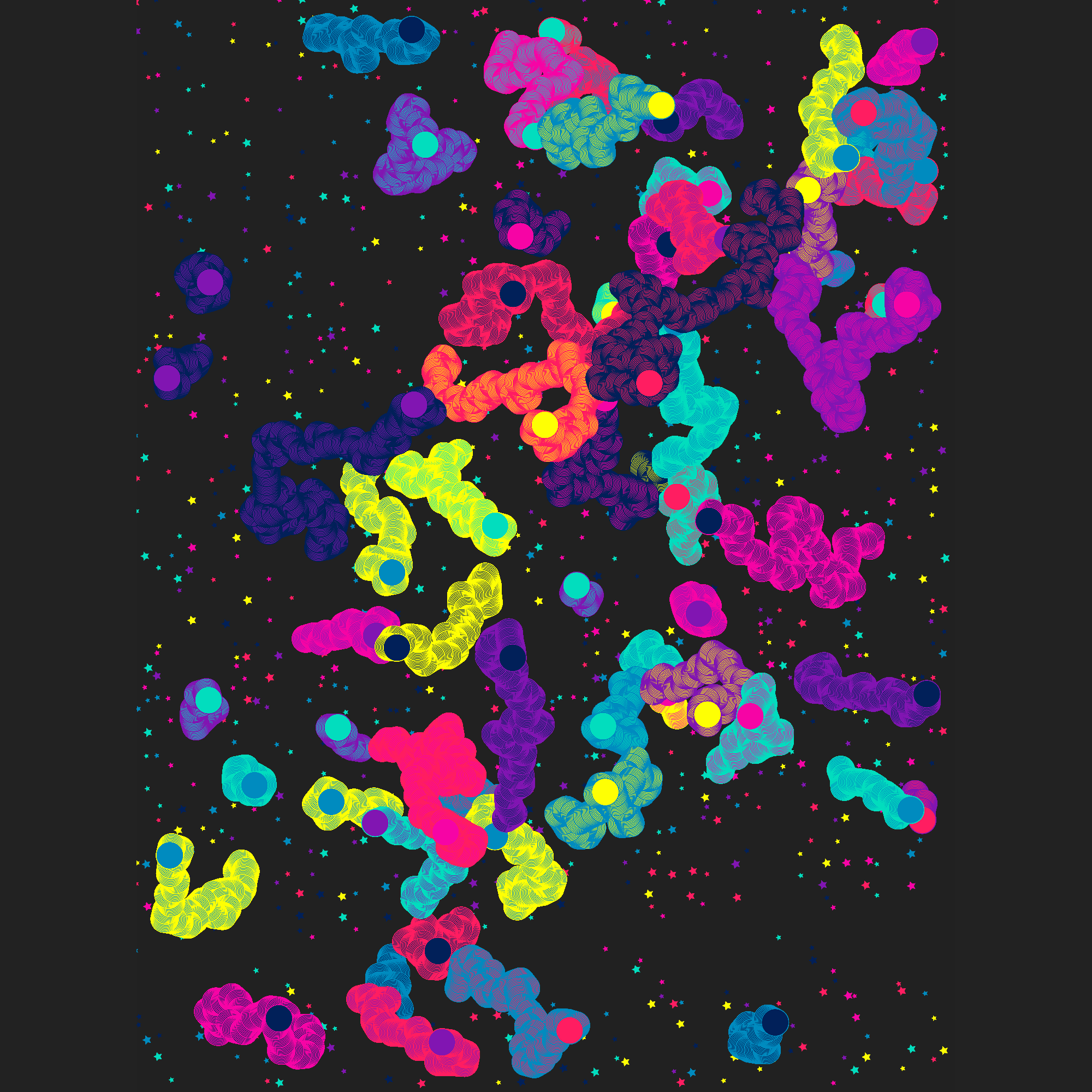 As slinkies rise and sway through flurries of confetti, sometimes this play is focused and orderly. At other times, they crowd together riotously, conspiring to sneak off the sides altogether.