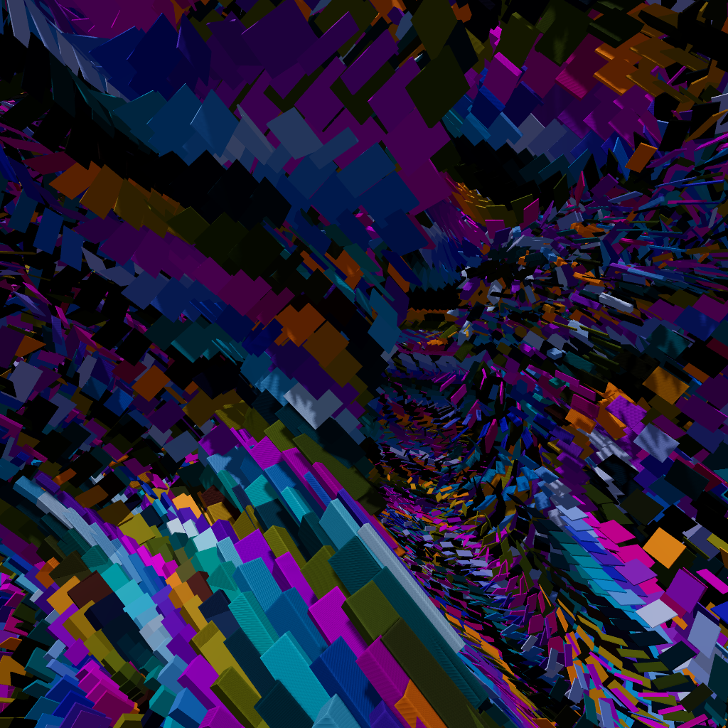 AGSMU is a piece created for day 3 of genuary, prompt "Glitch". 10,000 shapes move in wave-like motion, intersecting and leaving trails, to produce a relaxing but dynamic motion piece.