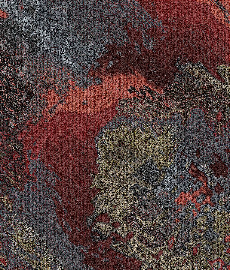 "Aerial" is a generative (100% code) abstract artwork, emphasizing to texturing and painting surface aging wear, inspired by surfaces with erosion - corrosion, craquelure (cracks), scratches, etc for example old drying oil or tempera painting in materials like canvas, wall, stone or wood.