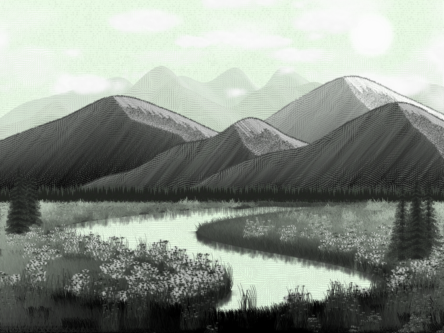 The "Tears of the Mountains" is a generative art collection that showcases emotions ranging from tears of happiness to boundless optimism. Inspired by Edgar Payne, I infused my own creative perspective into this art piece, giving consideration to important components such as value, composition, the rule of thirds, and perspective.