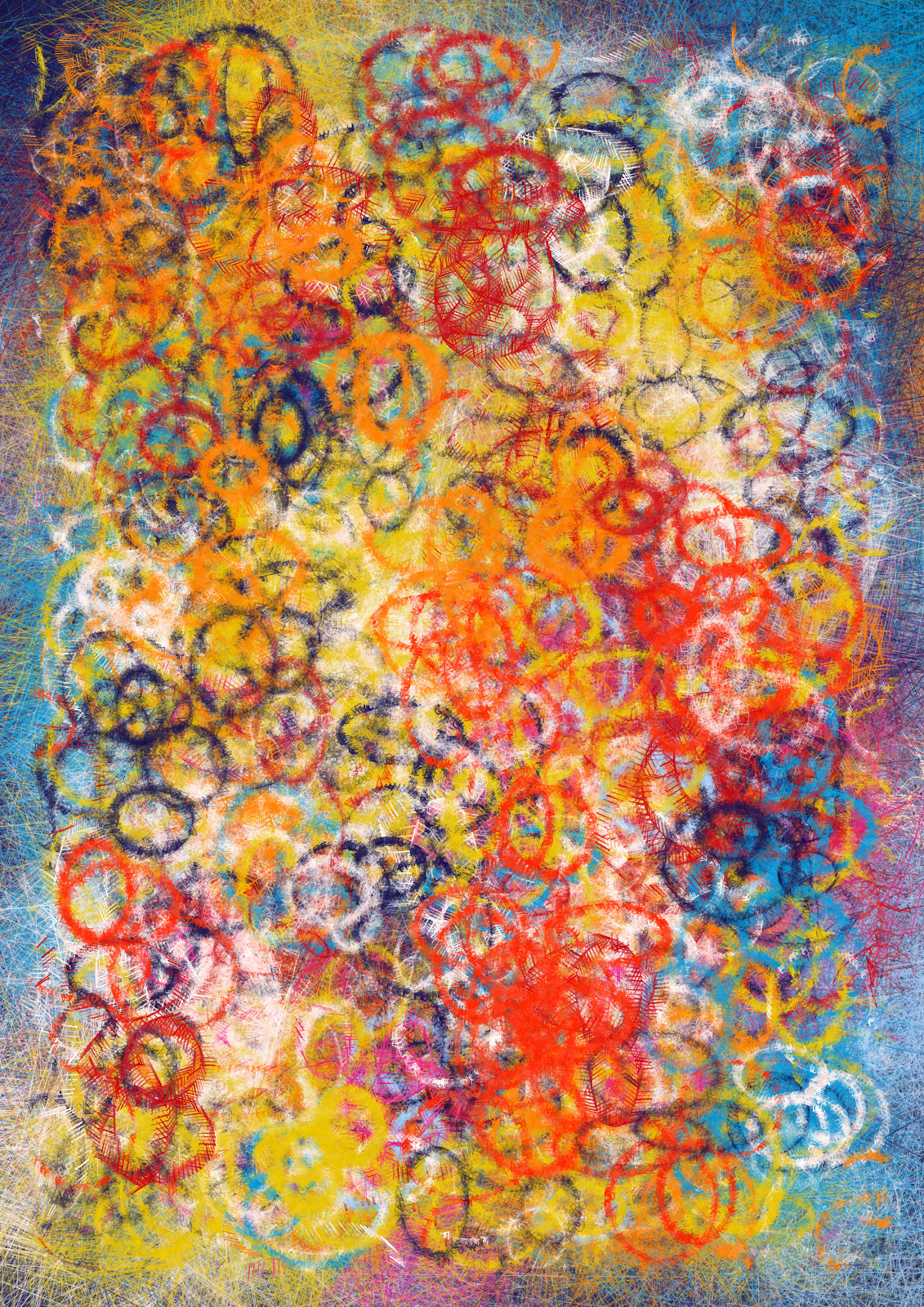 Inspired by the works of artists such as Jackson Pollock and Joan Mitchell, 'Pile' invites us to contemplate the rich and multifaceted nature of life, and to celebrate the distinctive stories that each of us carries within. Through its vivid abstraction of life's controlled chaos, and the tension between organic lines and overtly digital marks, 'pile' beckons us to consider the intricacies of our own layered identities and to revel in the diversity of life.