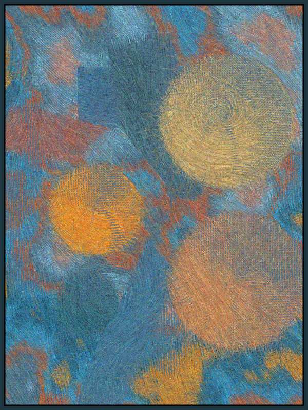 In Flow is the first in a series of four projects exploring flow fields, produced with 100% code in p5.js. This one has a consistent gap between flow lines and a low noise resolution, producing a wispy effect that often looks like thread or felt. Sometimes the background is a bit garish, which can be fun. There's a good chance some texture will be added in the end, either mixing the colors and softening, or adding a fine paper texture. It finishes off with a grain shader by Dave Pegurek found here: https://editor.p5js.org/davepagurek/sketches/m6p09ERHx