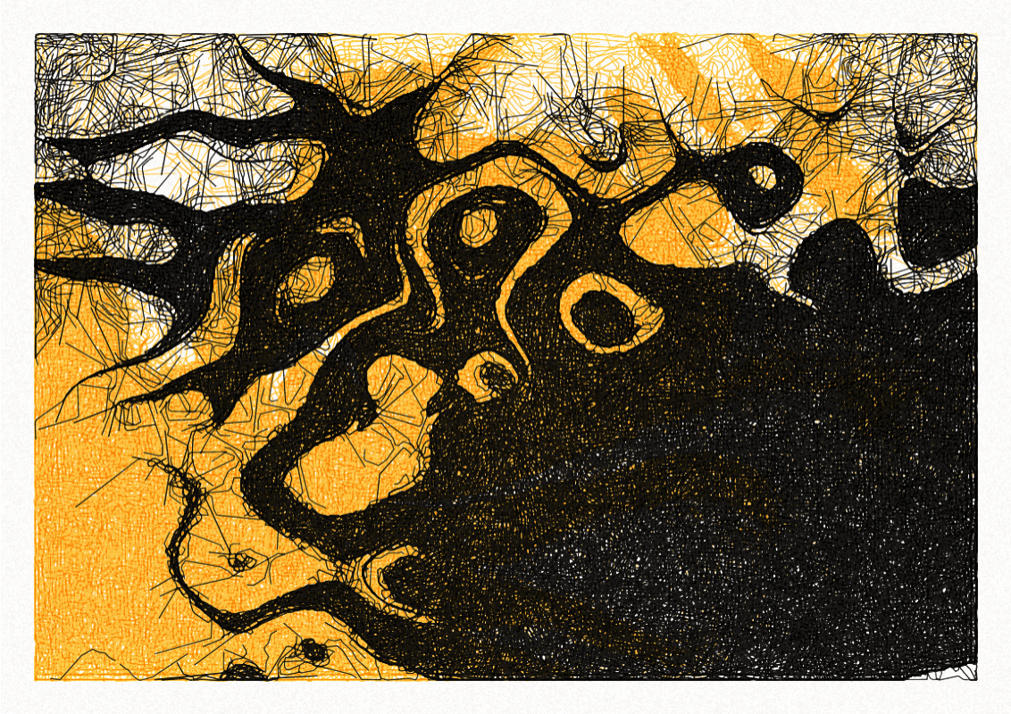 This generator uses fx(params) which allows the minter to partially finetune the art, making this a co-creation. I have chosen to allow to be able to configure all chaotic behaviors of these piece: the layers, density and distortion factors – however the paper/ink palette remain chosen by RNG (with the possibility to limit the colors from that palette). Take the time to play with the parameters, less can be better sometimes!