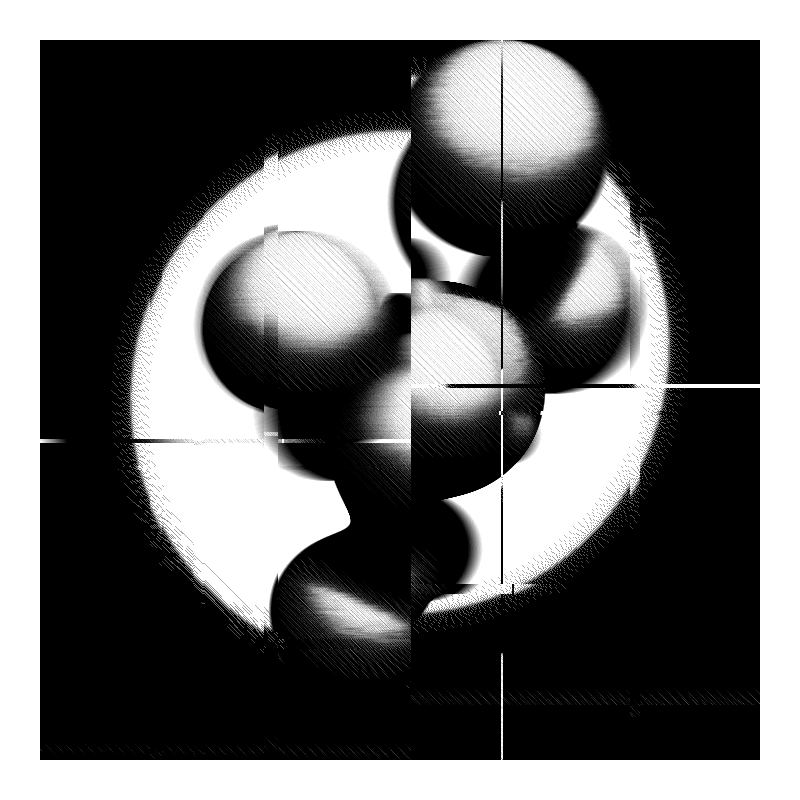 Every iteration shows a black and white composition of floating spheres or formless blobs as an undetermined amount of matter. The image has the qualities from a old print with a digital degradation expressing the passing time and the passing times.