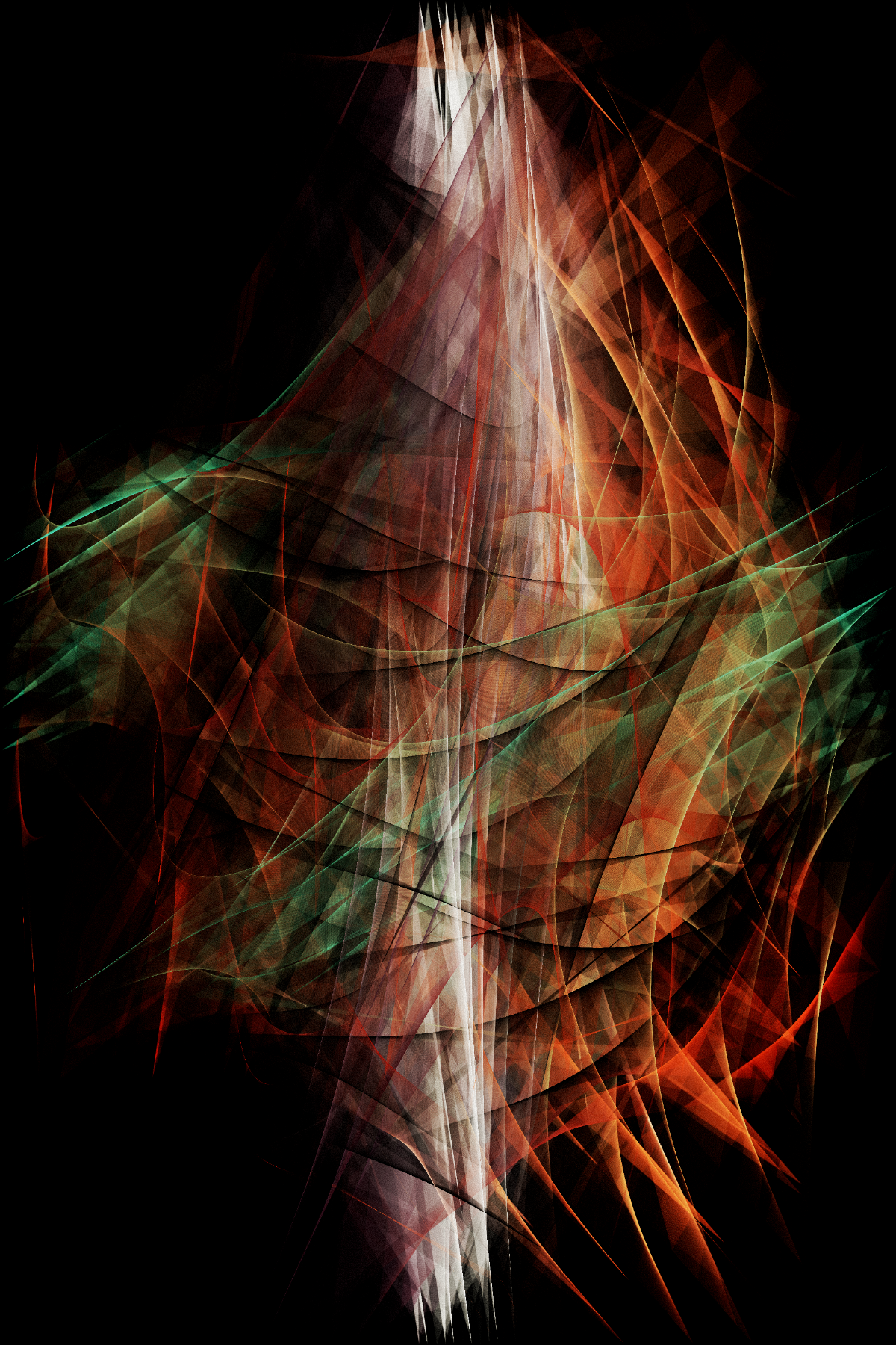 As usual, each step is typically drawn with very low opacity, and is repeated hundreds of thousands of times. Eventually, the interaction between overlapping lines creates unexpected patterns and textures.
