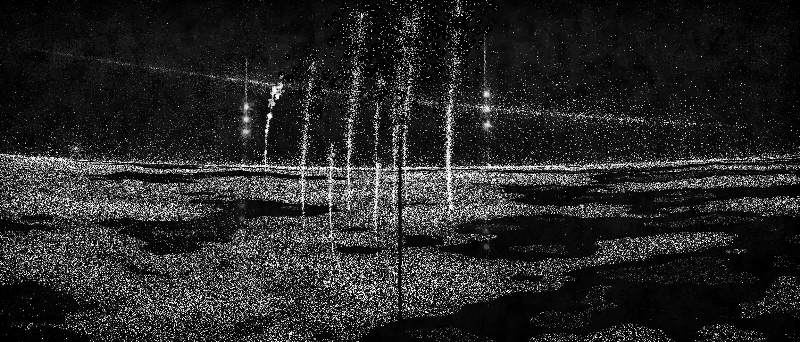 Although the piece is considered finished after three-hundred and sixty frames, I like the render process to be as much a point of interest as the finished piece, and so the landscape is formed progressively: thousand upon thousands of tiny points maniuplated and added to the piece over time.