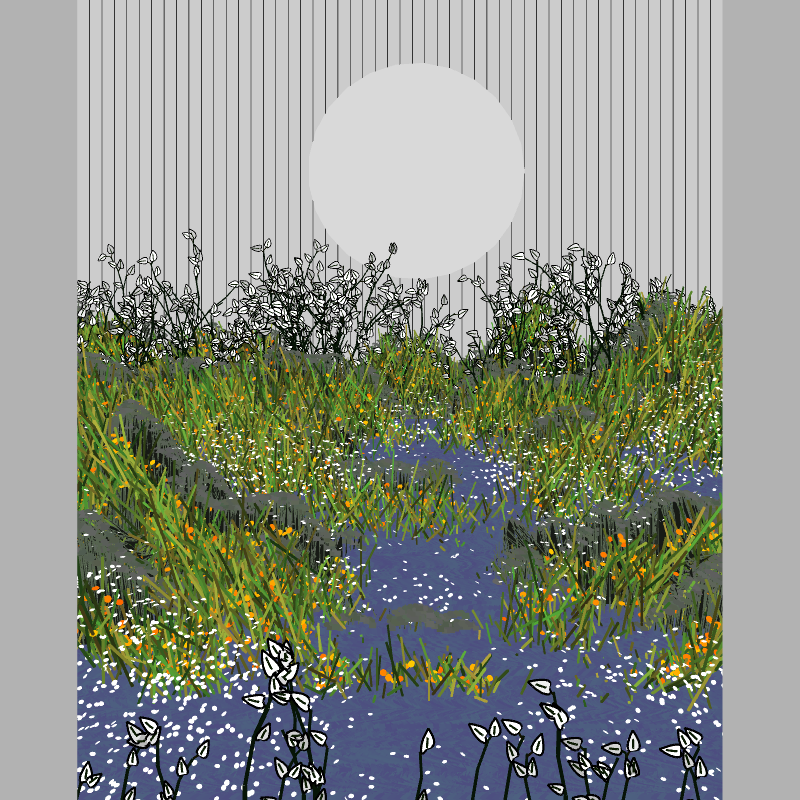 Art created through the movement of a single terrain, sometimes generating rocks, sometimes some branches. Sometimes just staying still and creating a lagoon. I let the random movements do most of the work. I hope you enjoy the landscape.