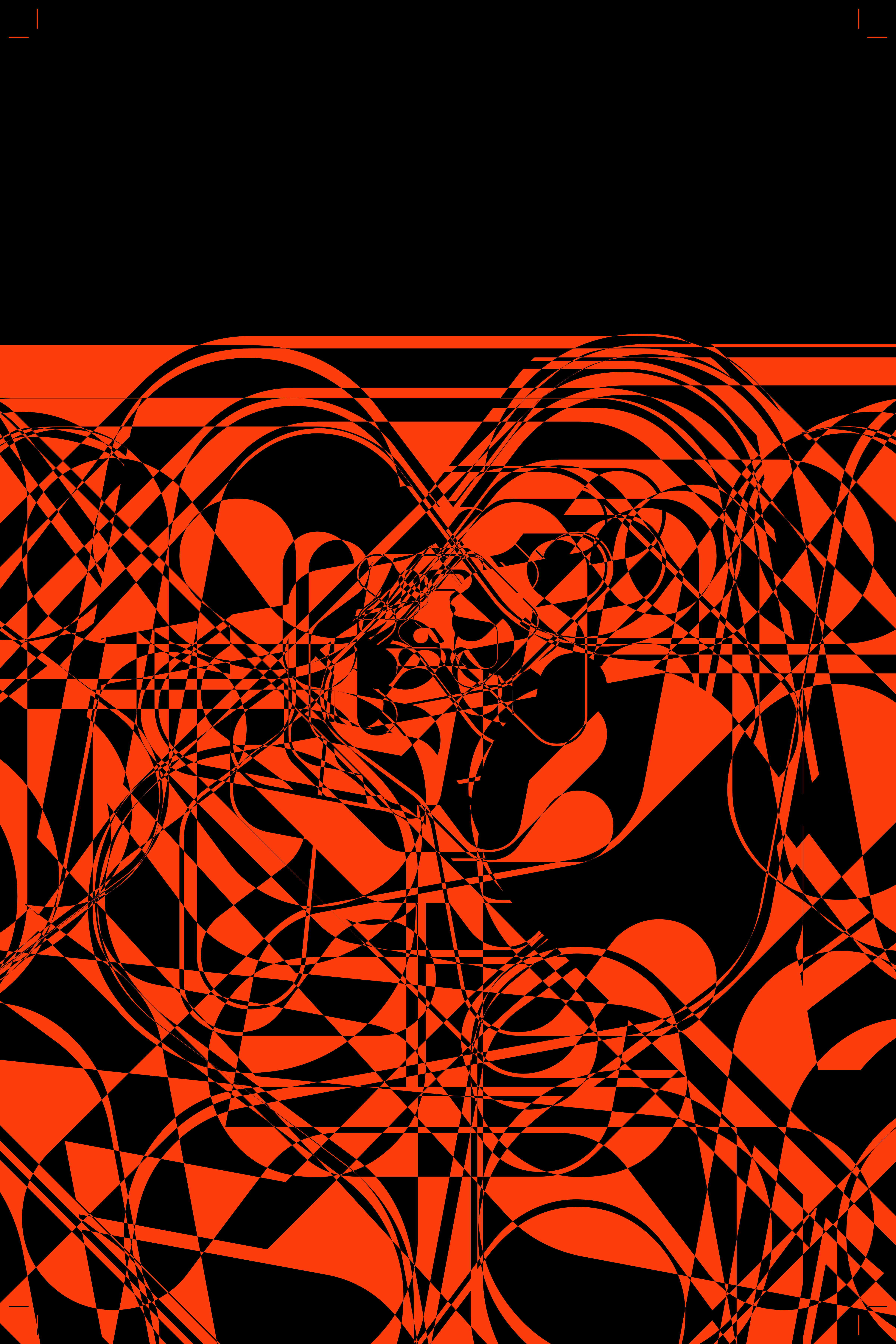 The algorithm uses only two blend modes: Difference and Remove. By limiting the blend modes and using a smaller and softer colour palette, Pile-o-Type creates a cohesive graphical aesthetic while still allowing for an endless array of randomized layouts. Each time a character overlaps with a previous character, it either masks out the overlapped section, turns it black or the selected palette colour.