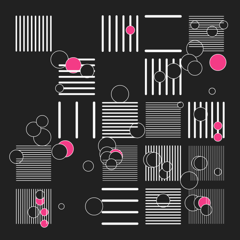 It’s a randomly generated grid of lines and circles, resulting in quite intriguing designs. Programmed using p5js.