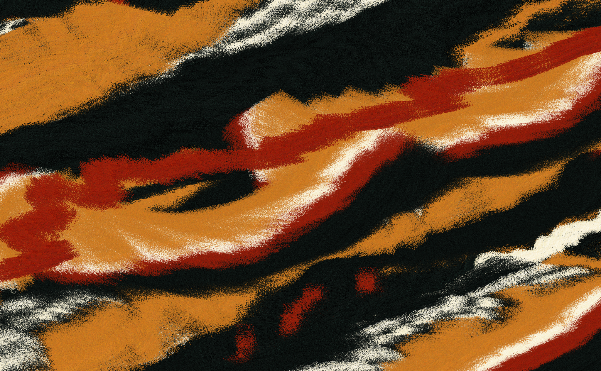 The dot drawing technique was inspired in part by a Tyler Hobbs article about his series Haecceity, in which he wrote about using dots as a way of mixing dissimilar colors while avoiding the resulting muddiness that you get if you do this with partially transparent layers.