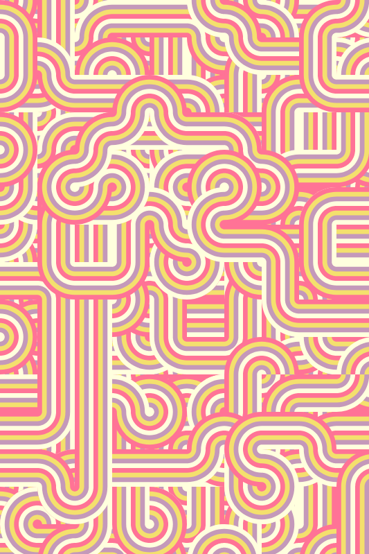 Twisted path with changing colors and overlapping. The line consists of six pieces, one after the other, to form a long and intertwined path