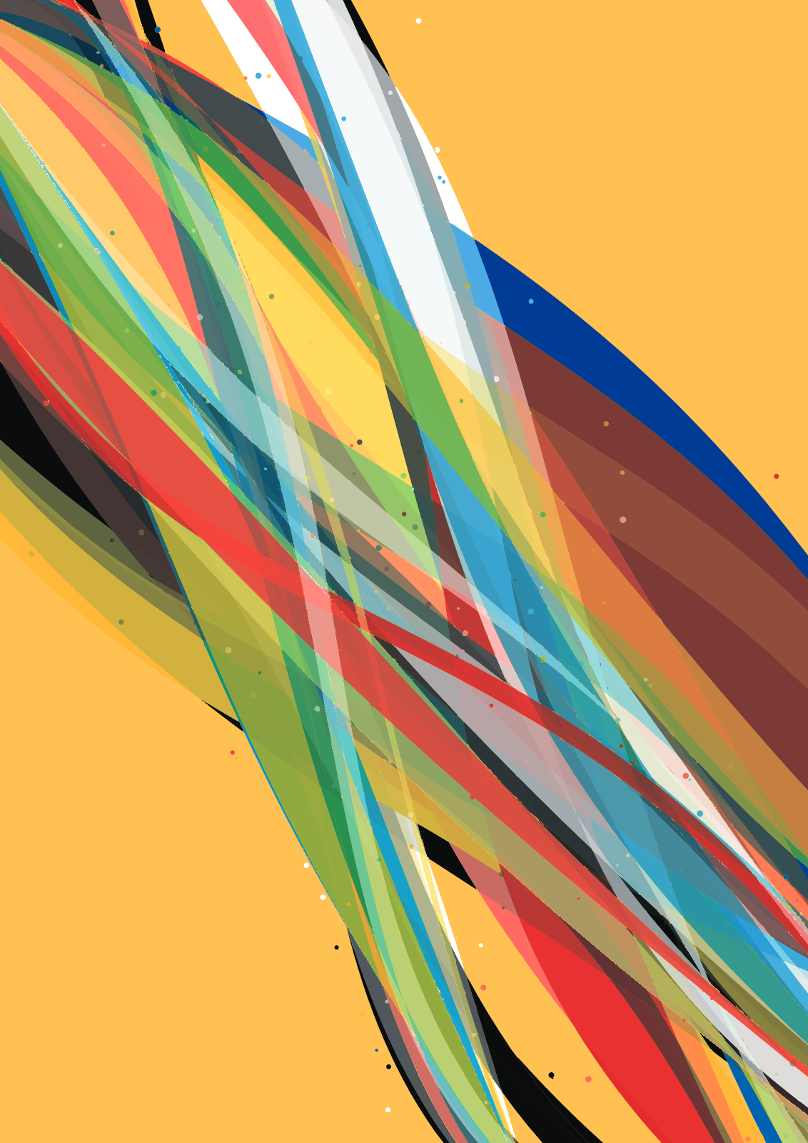 Vezels is a generative art algorithm that explores realistic color mixing. In this project, the canvas is treated as a wet painting where each new paint layer brings forth new colors. The algorithm starts with a color palette of three hues, along with black and white. It then creates overlapping and intertwining shapes, offering opportunities for new color blends. The output reminded me of the threads of a rope, either coming together or unraveling. Hence the name ‘Vezels’, the Dutch word for ‘Fibers’.