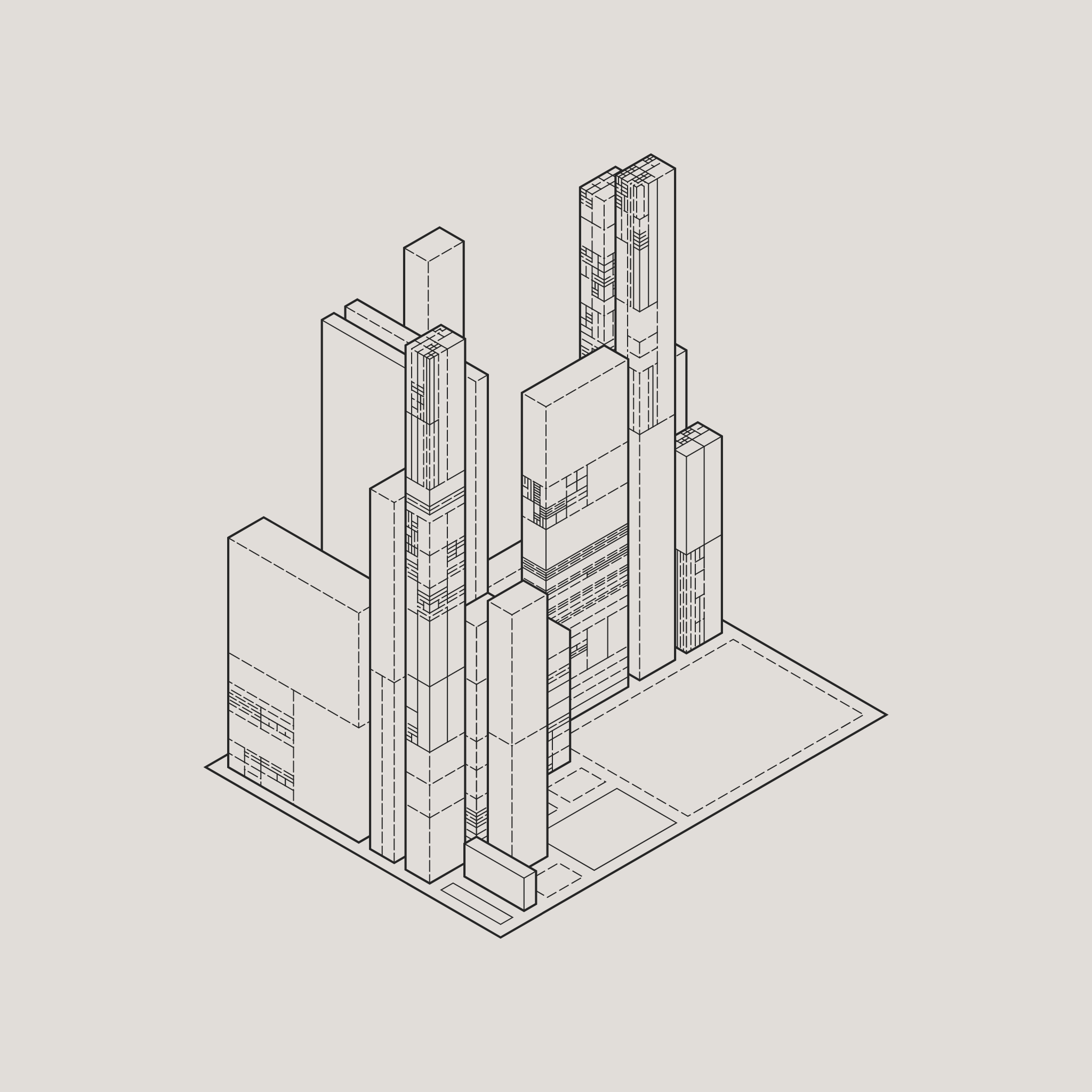 Urban Planning continues the exploration of abstract and recursively generated architectural systems that I started with the Recursive Architecture series. It plays on my own fascination with scale models and bird's-eye views, as well as technical drawings.