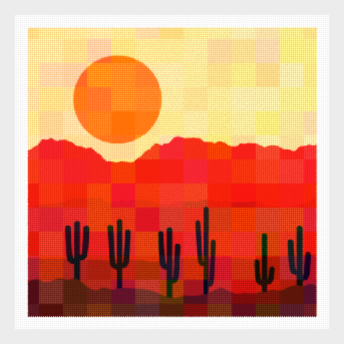 This abstract artwork is a tribute to Jake Rockland's "Patchwork Saguaros," infused with algorithmic elements, fully developed using p5js (100% code). Based on different times of the day, different colors are considered as well as different algorithms. I suggest you use google chrome to view the effect better and faster.