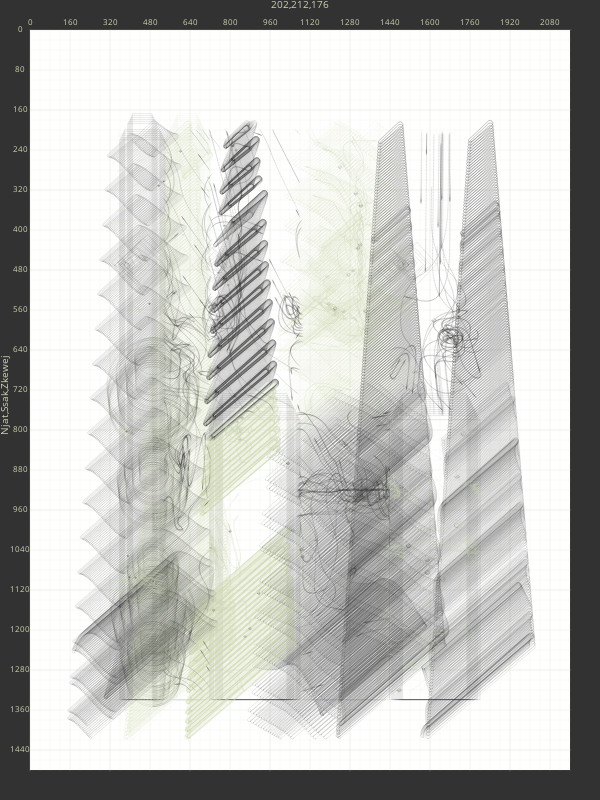 it's a generative work that combines the precision and rigidity of a technical project with the expressiveness and creativity of informal abstract art. Made on graph paper highlighting the technical nature of the basic design. The grid creates mathematical order and clear structure, providing a stable foundation for artistic exploration.