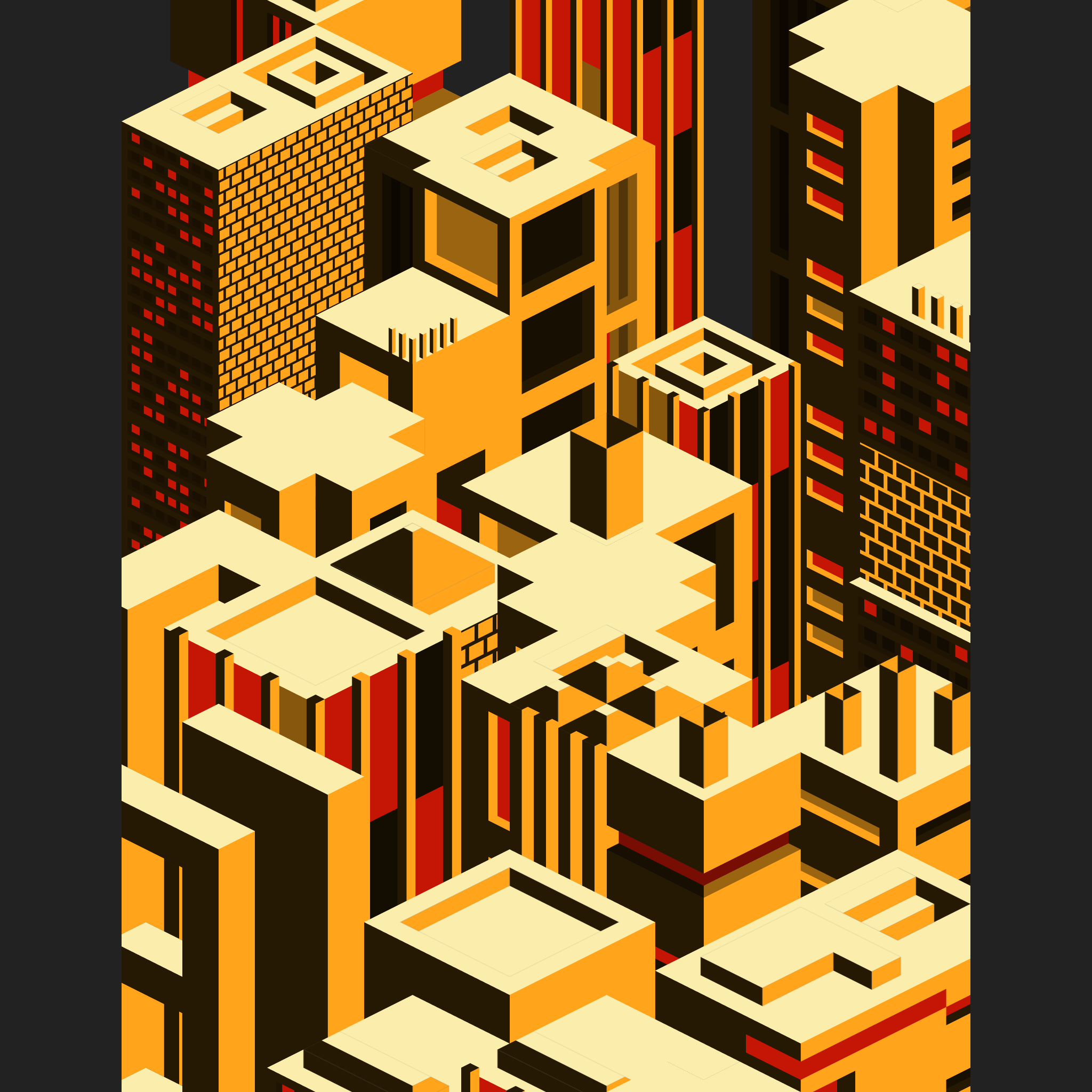 This algorithm depicts an isometric view of a city. Therefore, the basis of this algorithm is isometric design.