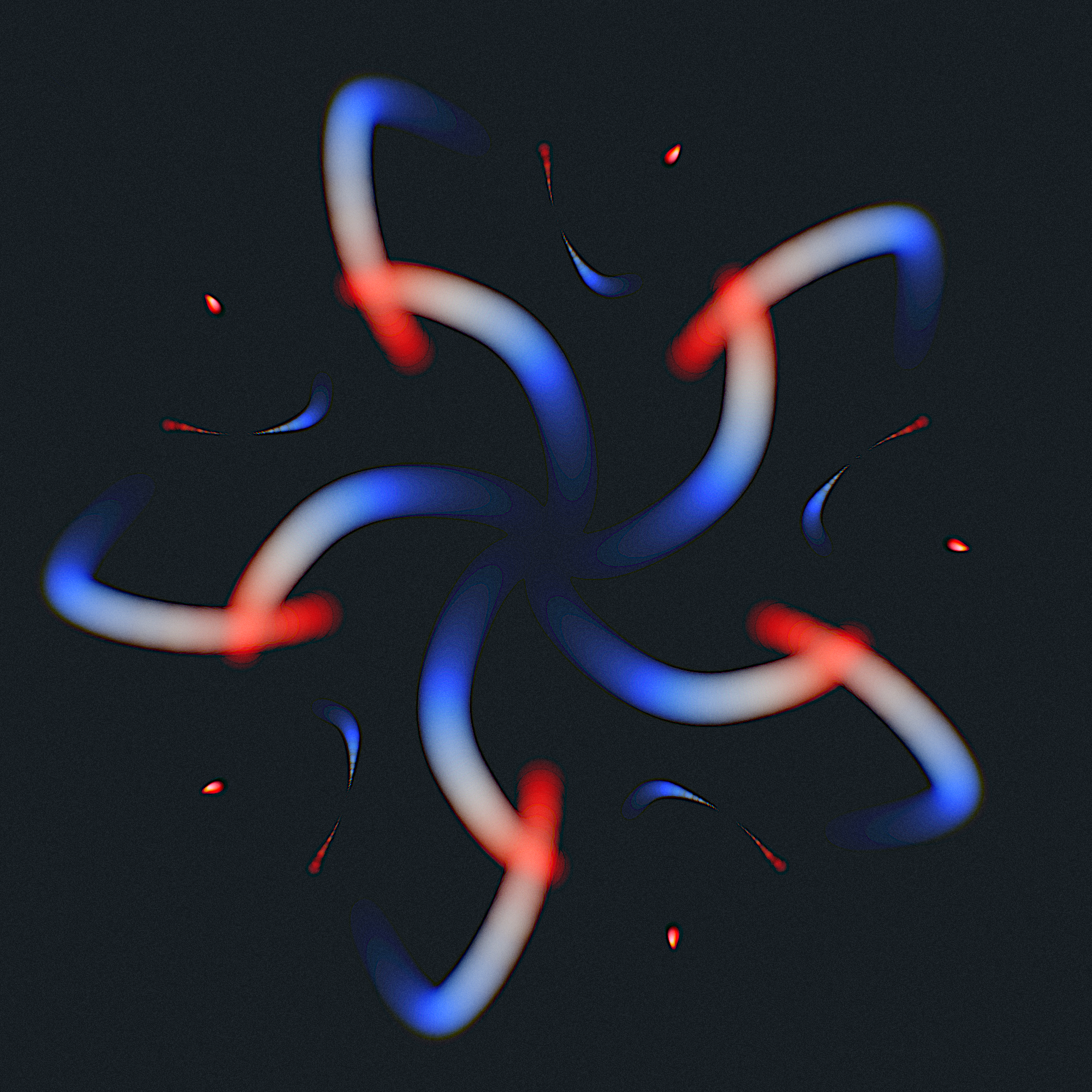 The graphical style is inspired by the infinitely looping GIFs, and the effect itself is created using a bunch of simple circular geometries that are fed into feedback loops. The color gradients are made by something that could be called chromatic motion blur.