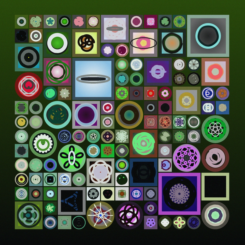 A celebration of hypotrochoids Click to save a 2048x2048 png By Frank Force @KilledByAPixel