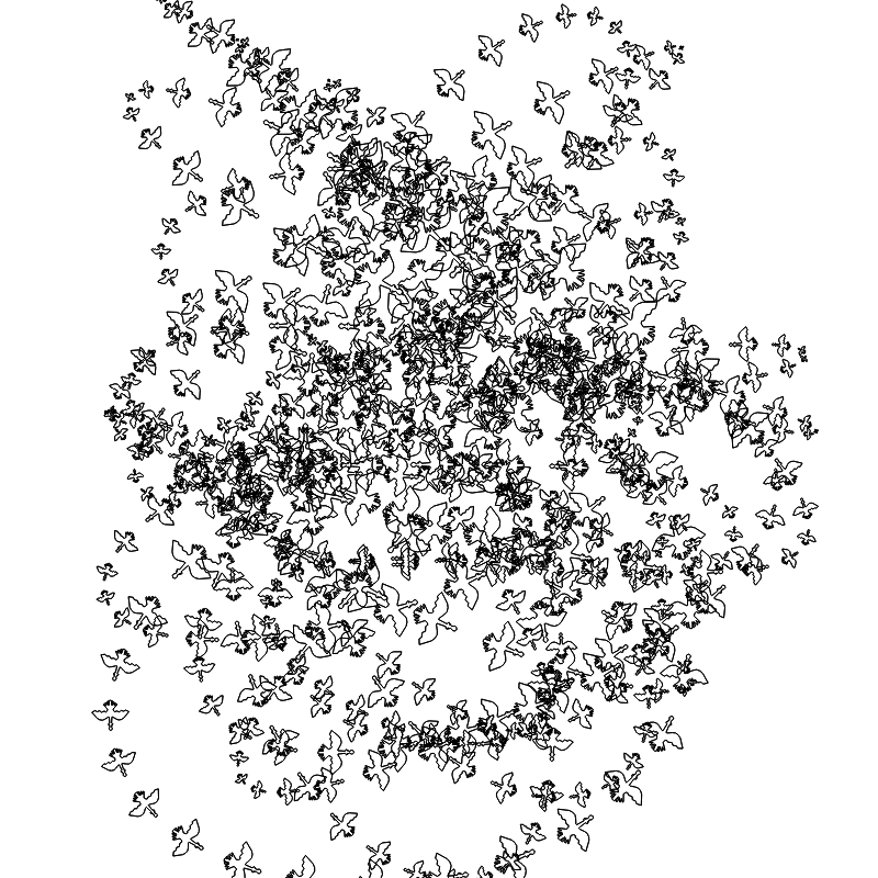 The original plotter artwork Bird Curves was produced in 1975. It came be seen (and purchased) at: https://www.drbillkolomyjec.com/hard-copy/plotter-prints/bird-curves