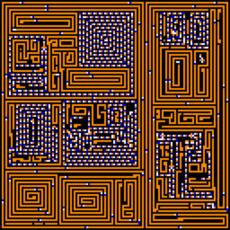Multiple snakes feed with electricity, grow, and are definitely going to lose the game and transform into an electrical circuit cellular automaton.