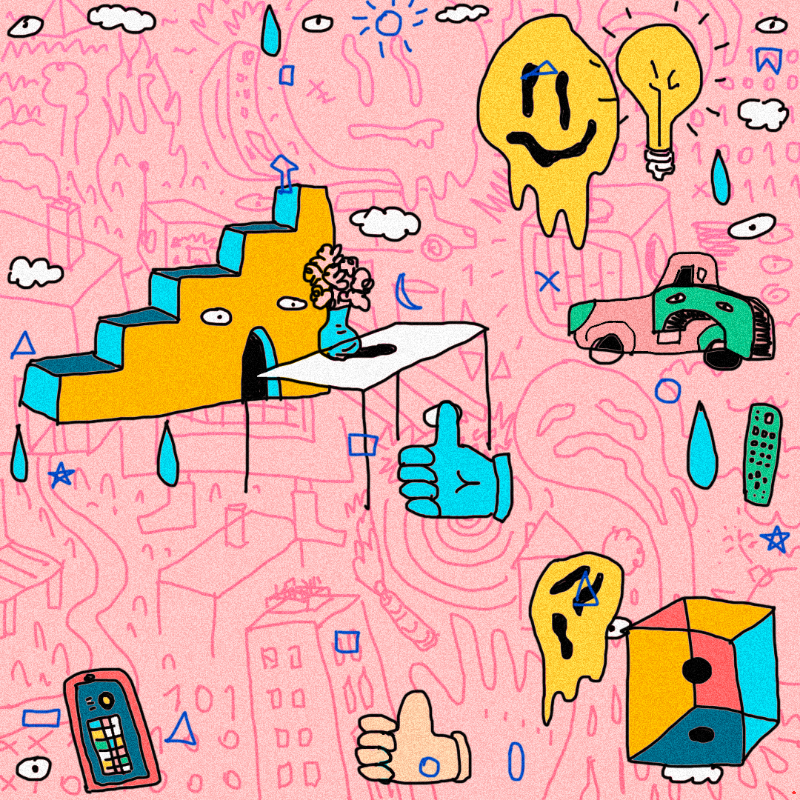 A few layers and words, a few symbols and icons, all working like the controlled randomness of an algorithm. 2021.