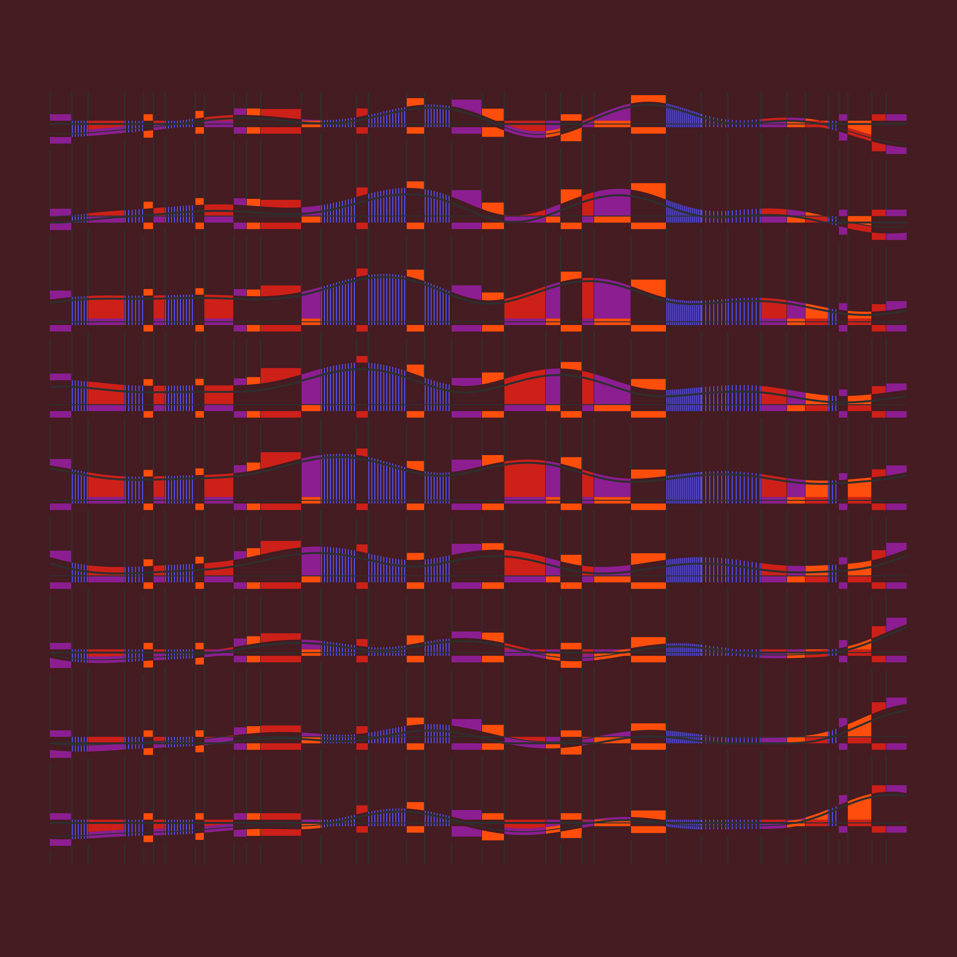 To create these compositions, the program creates random curves (based on Perlin noise).